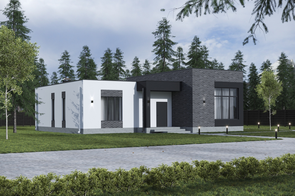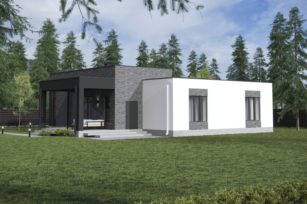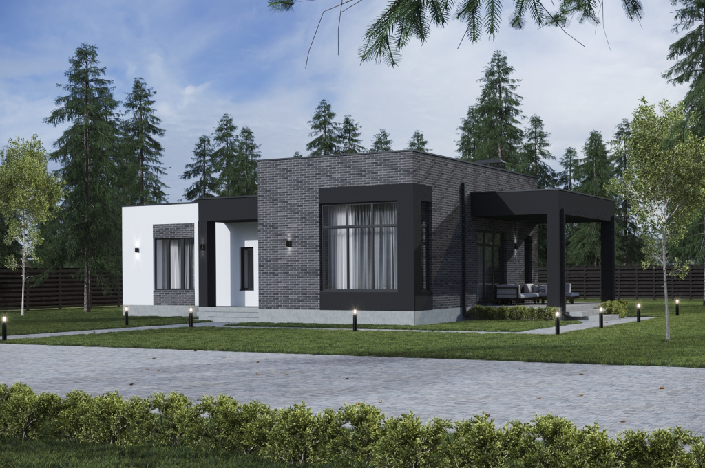1-этажный кирпичный дом «Эвкалипт» общей площадью - 138 кв. м.. Просторная кухня-гостиная, 2 детские, 2 ванные комнаты и мастер-спальня.