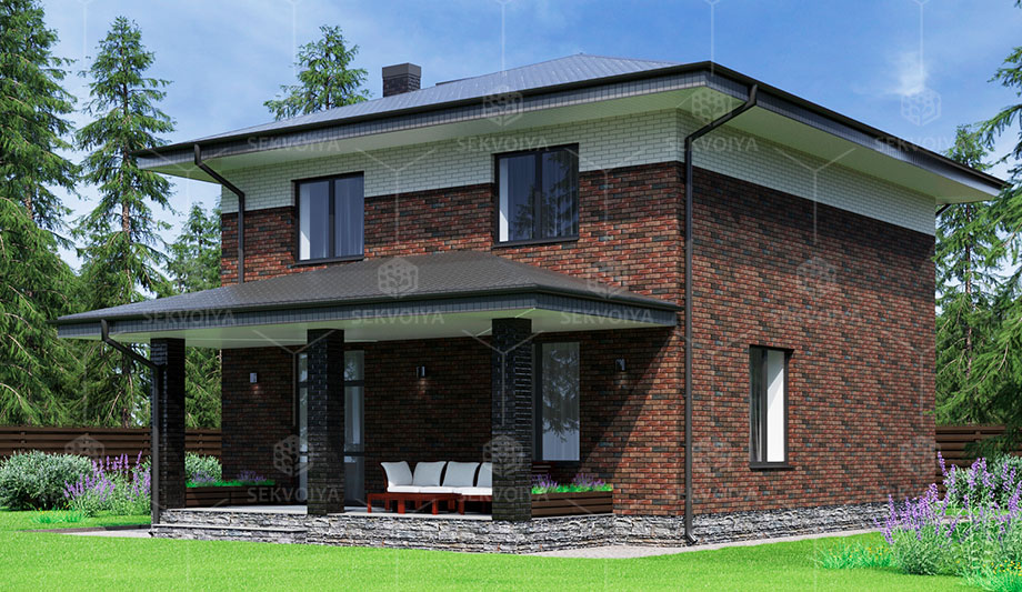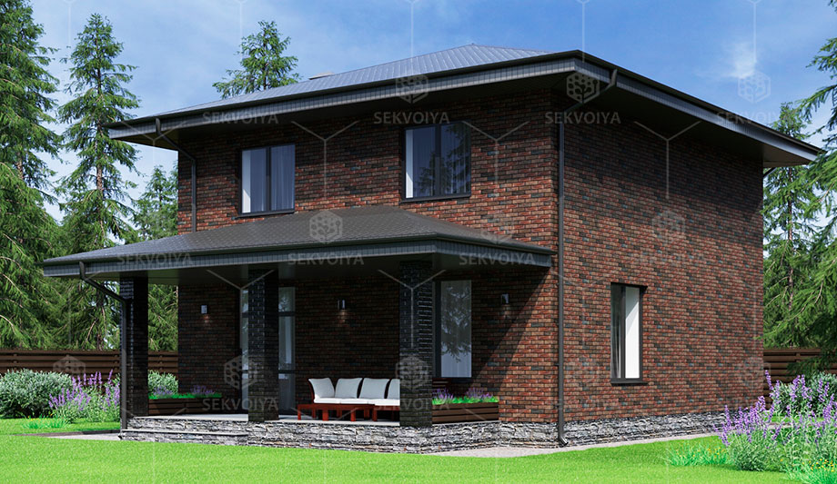 Просторный 2-этажный дом «Клематис» 133 кв.м с балконом идеально подходит для создания уютного гнездышка большой семьи за городом. Также есть возможность заказать дом с террасой под навесом, которая станет излюбленным местом для всей семьи в уютные теплые вечера. Представьте, как приятно будет проводить время на симпатичной террасе под козырьком всей семьей, дышать свежим воздухом и, закутавшись в плед, смотреть на звездное небо. Преимуществом такого дома является рациональное использование внутренних пространств в сочетании со стильной баварской кладкой снаружи. Во время строительства территория оснащена видеонаблюдением с удаленным доступом через смартфон.