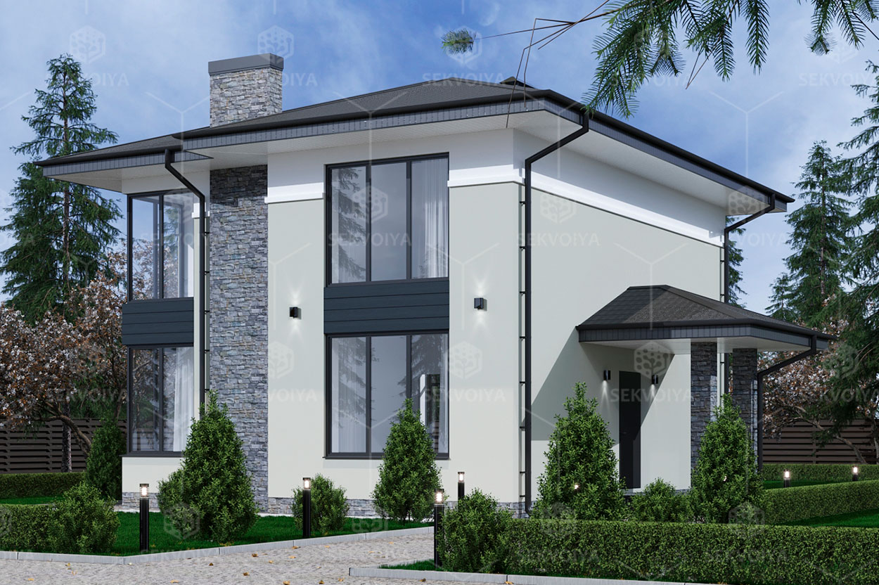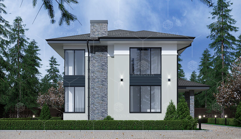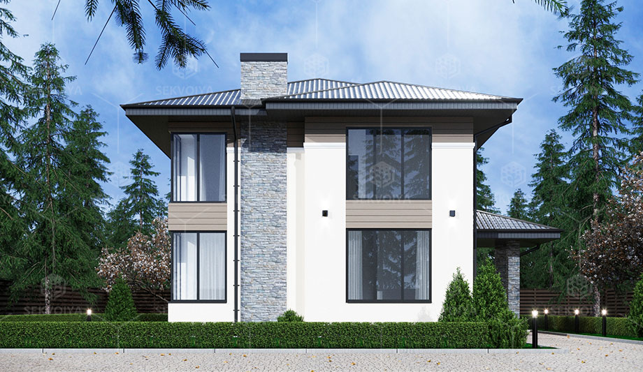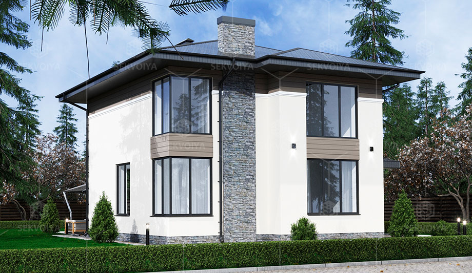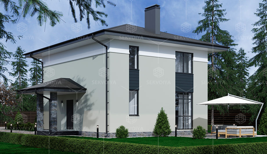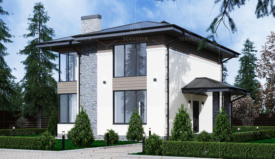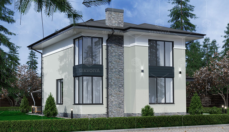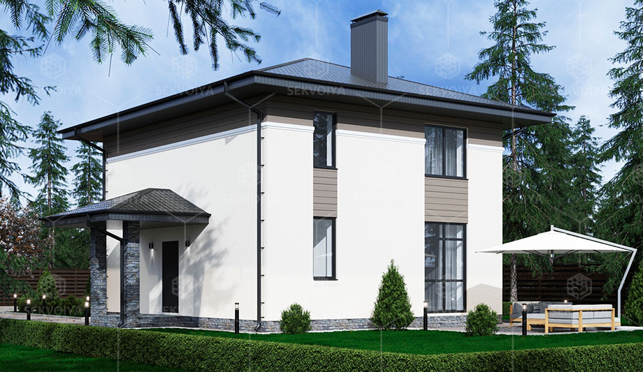 Модный и одновременно классический 2-этажный дом в штукатурке «Мирт» 125 кв.м настолько эргономичен и функционален, что о нем мечтает практически каждая семья, желающая переехать за город. Несколько вариантов отделки фасада на любой вкус. Также есть вариант исполнения в баварском стиле. Во время строительства территория оснащена видеонаблюдением с удаленным доступом через смартфон.