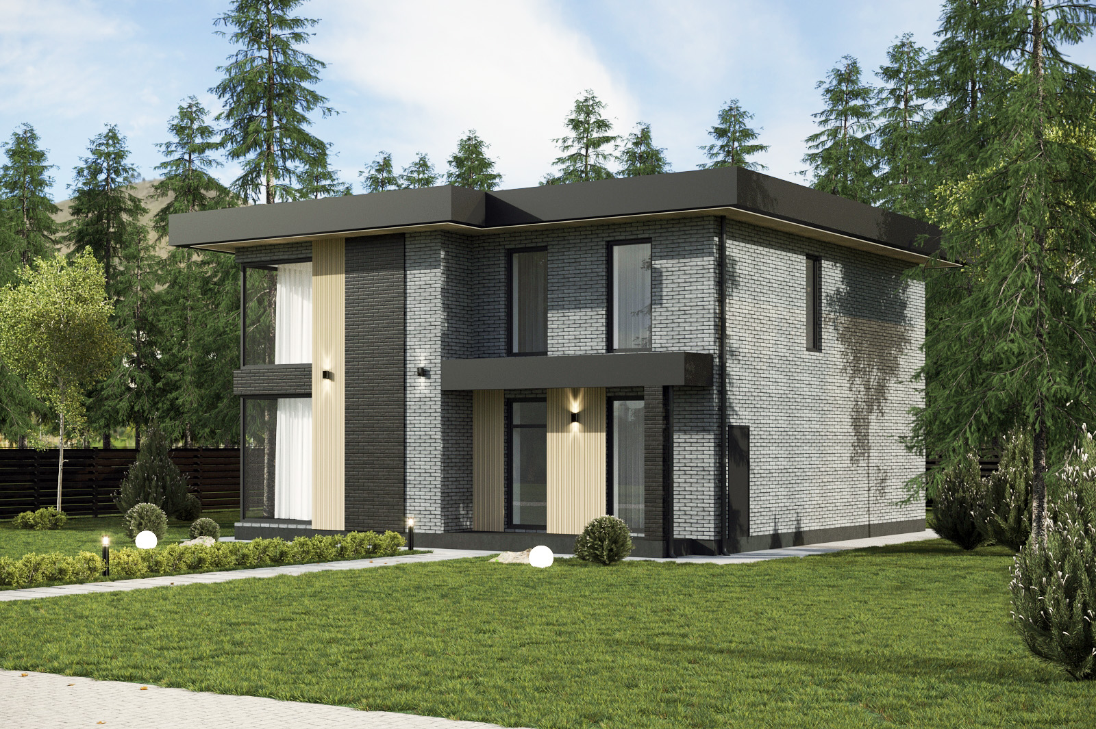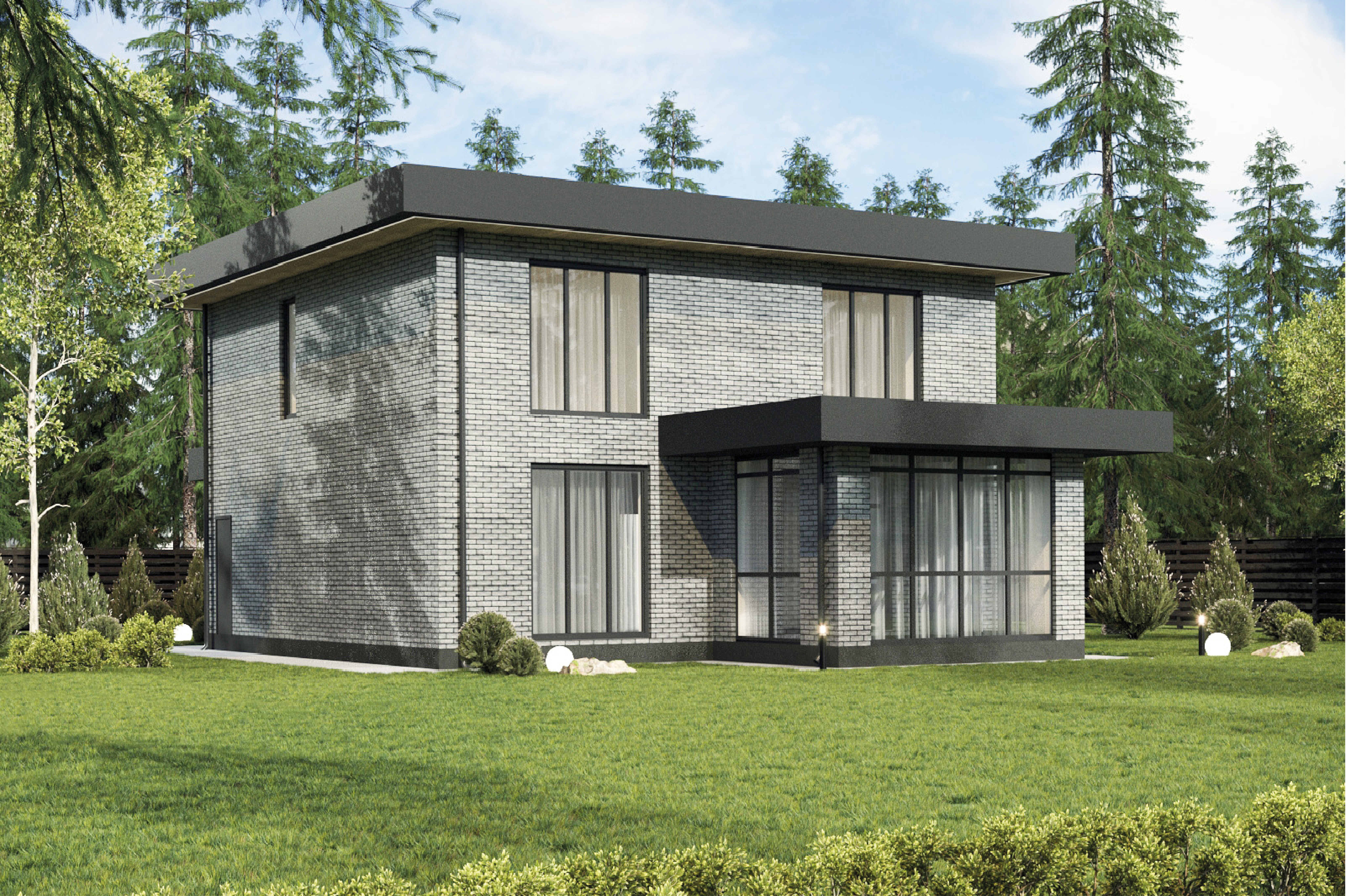 Надёжный и практичный дом с плоской кровлей. Уютный и футуристичный 2-этажный дом. Просторная площадь дома позволили разместить в нем все необходимые зоны. Наружная отделка дома из керамического кирпича с возможностью выбрать оттенок и композитных декоративных элементов. Местом притяжения для всей семьи будет большая кухня-гостиная, где вы сможете проводить уютные семейные посиделки и принимать гостей. А закрытая терраса станет излюбленным местом для всей семьи.