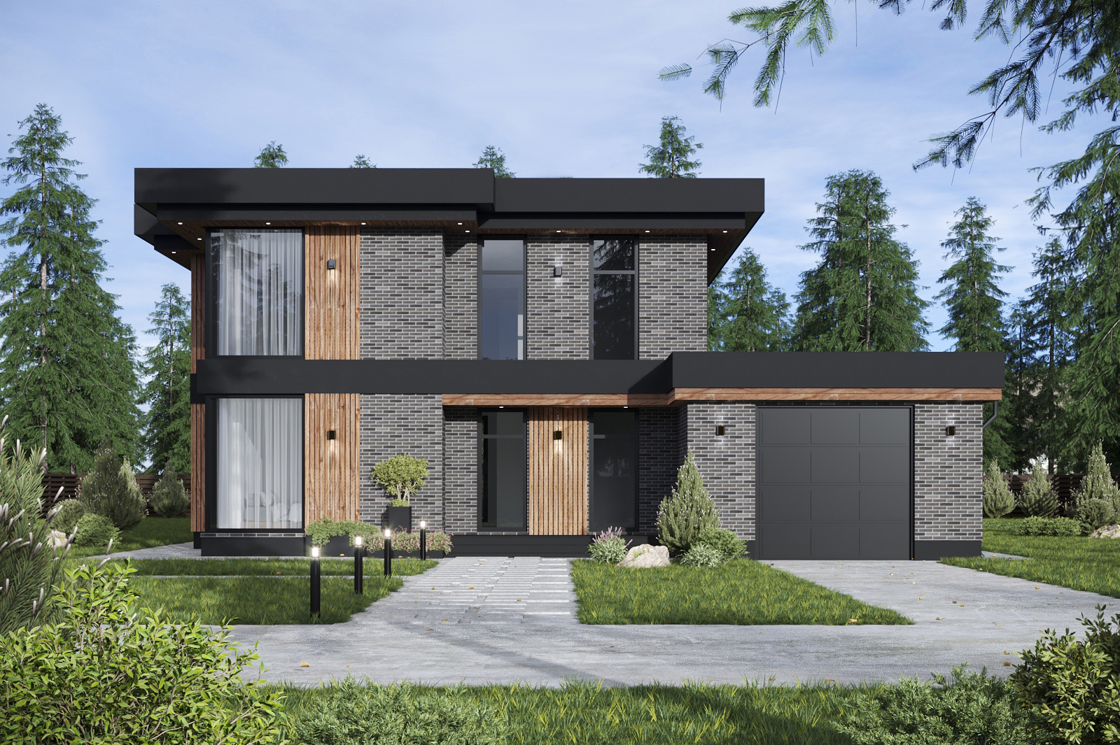 Центральная фигура на вашем приусадебном участке. Стильный, современный и просторный дом с летней террасой и балконом - отличный выбор для большой семьи. Вы можете поменять цвет и фактуру отделочного кирпича и декоративных элементов под свой вкус, а также добавить элементы подсветки фасадов. Представьте, как приятно будет проводить время всей семьей на уютной террасе под козырьком, дышать свежим воздухом и смотреть на звёздное небо, укутавшись в плед. А свой гараж - это особый комфорт и зимой, и летом.