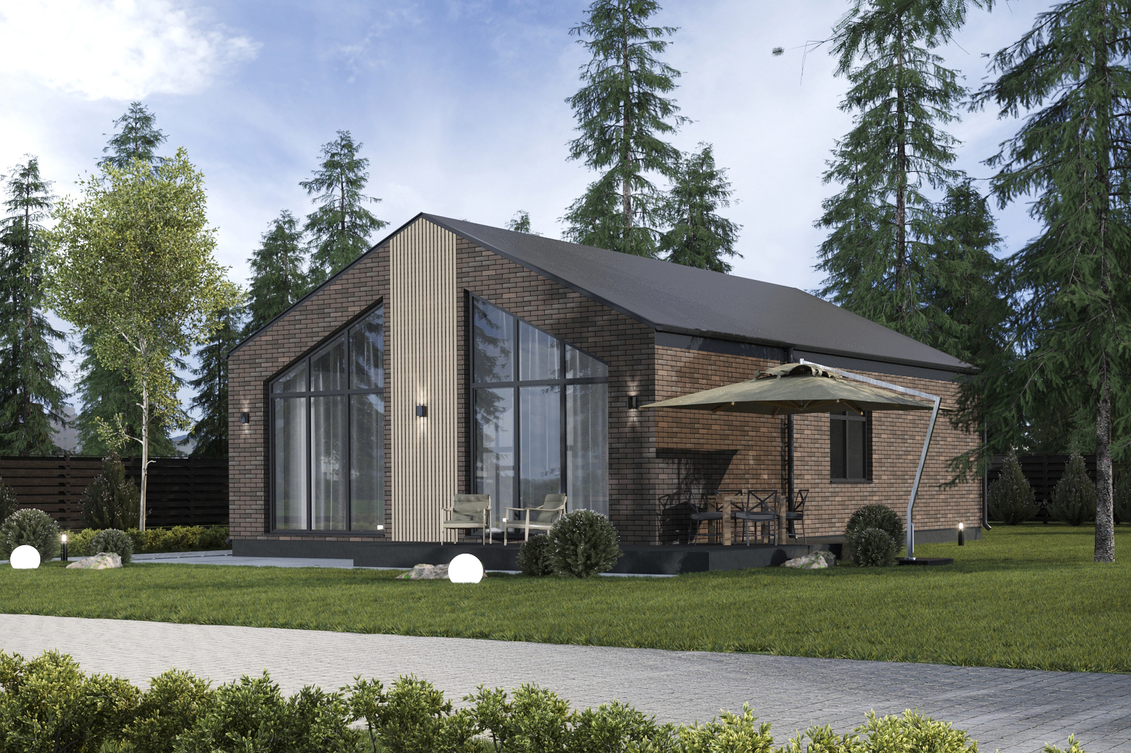 1-этажный кирпичный дом «Юкка» 90 кв.м, обладает элегантным дизайном и имеет очень уютный вид. Жилая часть дома разделена на обеденную и спальную зоны. Благодаря удачной планировке этот дом пригоден для всесезонной эксплуатации и круглогодичного проживания небольшой семьи. Во время строительства территория оснащена видеонаблюдением с удаленным доступом через смартфон.